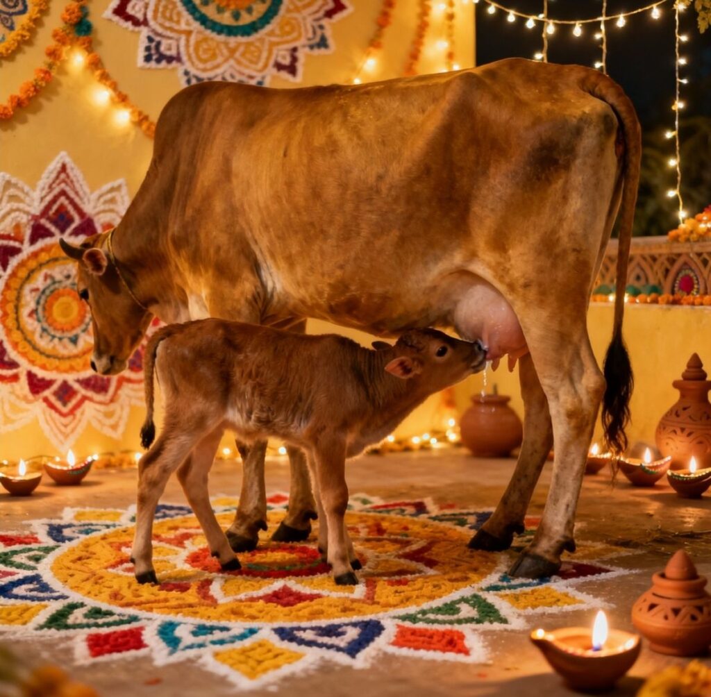 गायीच्या शयनावर रांगोळी काढावी किंवा गायीची मूर्ती असल्यास तिचा अभिषेक पंचामृत्ताने करावा.